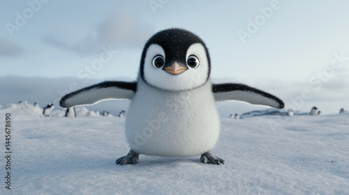 © Berkah1789, Fototapeta premium An adorable cartoon penguin standing in front of a snowy landscape