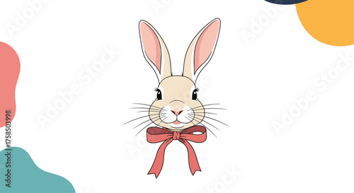 © Sami, Obraz premium An adorable fluffy bunny with long ears wears a charming red bow tie.