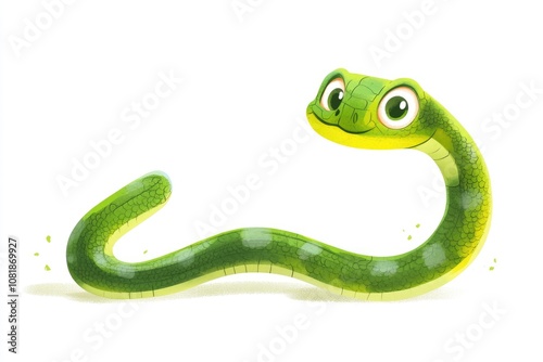 © Fotoksa, Naklejka premium An adorable illustrated green snake design isolated on white background, ideal for childrens content and various playful, imaginative designs