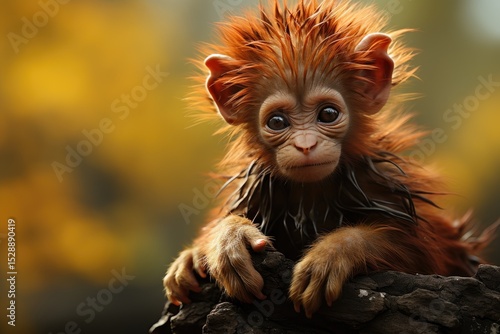 Fototapeta premium An adorable monkey with strikingly fluffy orange fur gazes innocently towards...