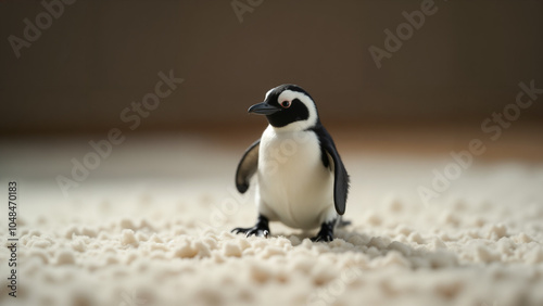 Naklejka premium An Adorable Small Penguin Waddling on a Cozy Carpet, Capturing the Charm of Wildlife in Domestic Surroundings