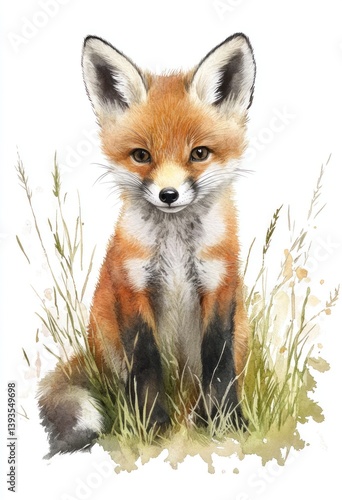 Fototapeta premium An Adorable Watercolor Illustration of a Sitting Fox