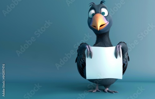 © Maxim Borbut, Obraz premium An adorable white goose hangs over an empty white poster. Stock.