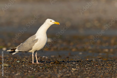Obraz premium An adult American Herring Gull (Larus smithsonianus) perched and foraging on the beach.
