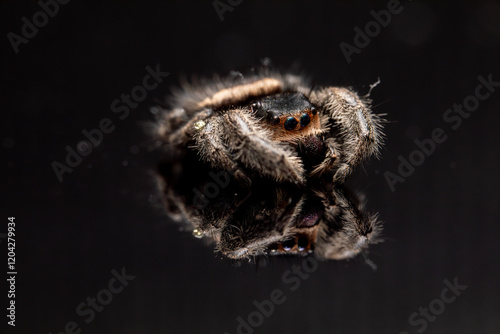 Naklejka premium An adult female regal jumping spider (phidippus regus). This particular specimen was photographed posthumously.