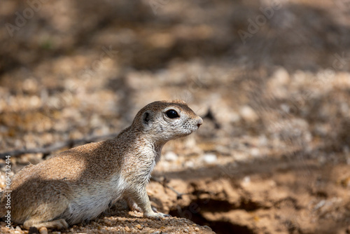 © Charles, Fototapeta premium An adult female round-tailed ground squirrel, Xerospermophilus tereticaudus, near her burrow in the Sonoran Desert. Native wildlife, Pima County, Tucson, Arizona, USA.