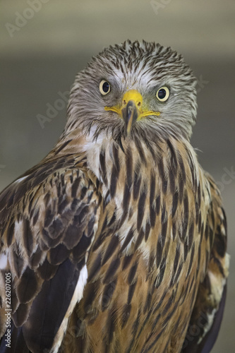 © Bouke, Fototapeta premium An adult red kite (Milvus milvus) rescued and resting in a wildlife rescue center. Perched and trying to recover from its wounds.