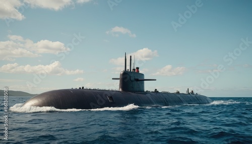Fototapeta premium An advanced submarine navigating calm waters, highlighting cutting-edge naval...