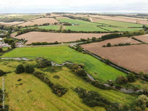 © chris, Obraz premium An aerial drones view of rolling countryside in Dorset England