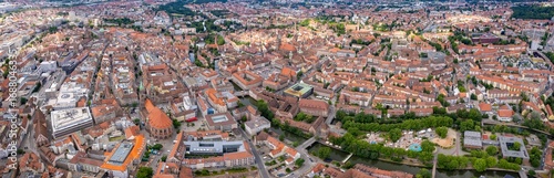 Fototapeta premium An aerial panorama view above the old town in the city Nuremberg or Nürmberg...
