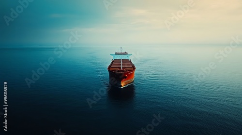 © Galib, Naklejka premium An aerial view of a container ship sailing on the ocean.
