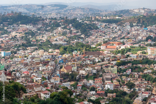 Fototapeta premium An aerial view of Antananarivo, Madagascar, revealing the city’s dense urban...