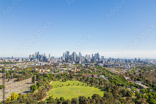 © south west images, Fototapeta premium An Aerial view of Carlton and Melbourne on a sunny summer afternoon.