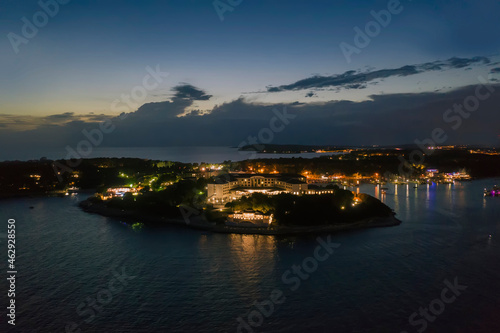 © burnel11, Fototapeta premium An aerial view of Park Plaza hotel at dusk, Pula, Istria, Croatia