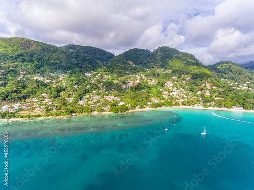 © Aliaksandr, Fototapeta premium An aerial view on Beau Vallon beach, Mahe island, Seychelles