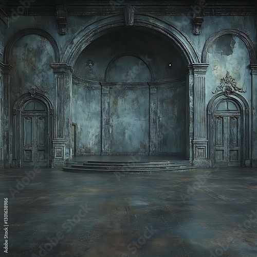 Fototapeta premium An aged interior with columns and ornate archways is visible