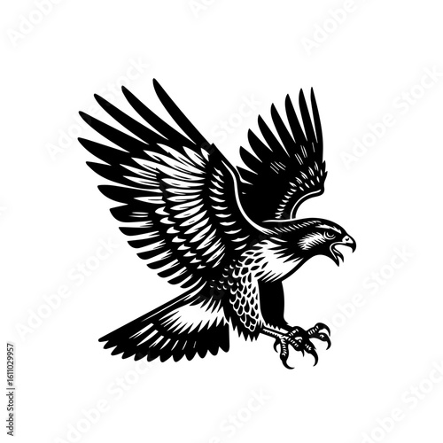 © md, Fototapeta premium An aggressive hawk in midflight with wings spread