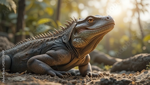 Fototapeta premium An aggressive Komodo dragon enjoying the tropical sun.