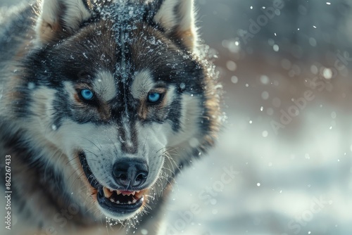 Obraz premium An aggressive Siberian Husky with a piercing stare, in a commanding posture...