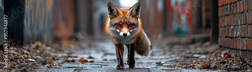 © Woranittha, Fototapeta premium An agile fox navigating a bustling alley