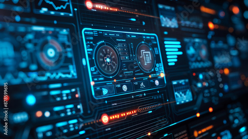 © Papisut, Fototapeta premium An AI-driven dashboard displaying real-time security alerts on a screen. technology AI