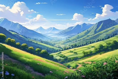 Fototapeta premium an AI Image Generator aerial view of a vast and lush rice field,