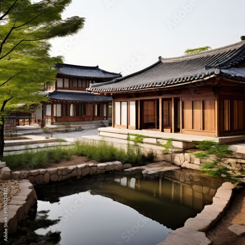 © boying, Fototapeta premium an AI Image Generator, Asian Architecture with Courtyard and Garden Landscaping