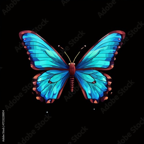 © yl, Fototapeta premium an AI Image Generator, Blue Butterfly Illustration on Black Background