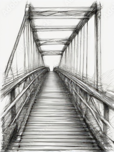 Naklejka premium an AI Image Generator, Perspective Drawing of a Bridge Depicting