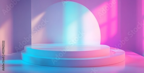 © Bundi, Obraz premium An airy widescreen minimalistic white and light blue architectural background banner with tilted columns.