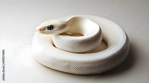 Fototapeta premium An albino snake coiled elegantly on a neutral, minimalist backdrop
