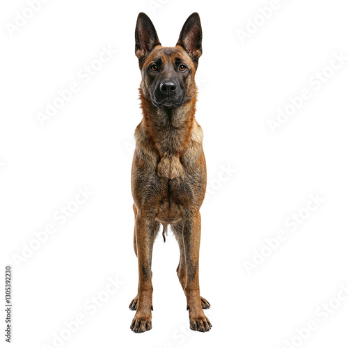 Obraz premium An alert Belgian Malinois with a tan coat emanating courage and loyalty on a crisp white backdrop