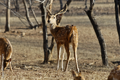© Steven Bramall, Naklejka premium An alert Indian Spotted deer looks over his shoulder at the camera