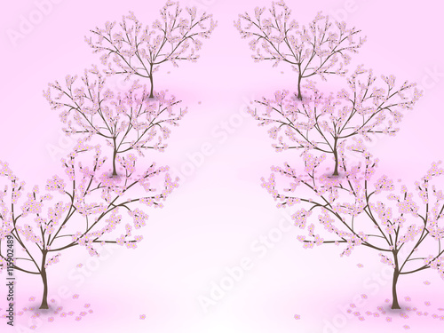 Fototapeta premium An alley of blossoming cherry trees on a pink background