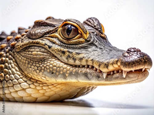 Fototapeta premium An alligator's detailed portrait reveals intricate patterns and textures,...