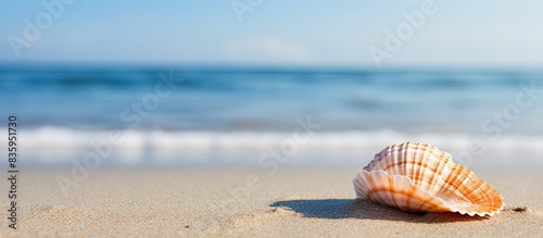 Obraz premium An alone shell on the beach. Creative banner. Copyspace image