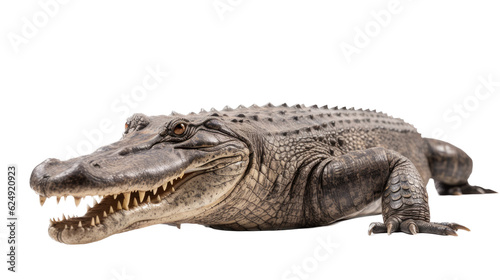 Naklejka premium an American alligator (Alligator mississippiensis) full body 3/4 view in a Wildlife-themed, photorealistic illustration in a PNG format, cutout, and isolated. Generative AI