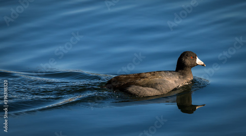 © Edward, Fototapeta premium An American Coot duck swimming in water
