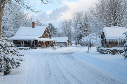 Naklejka premium An American rustic farmhouse's outdoor area reflects a harmonious blend of rural charm and functionality, showcasing the agricultural roots of early American life.