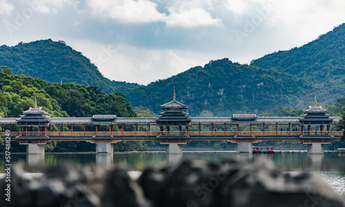 © Dalibor, Naklejka premium An ancient bridge over a lake in a park in the South of China