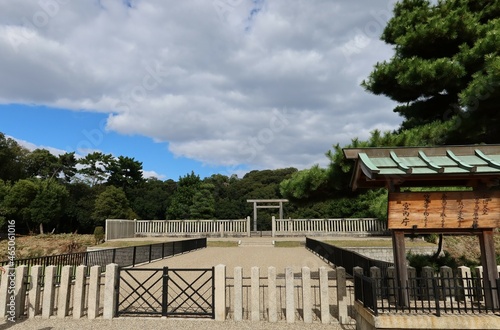 Obraz premium `,An ancient burial mound in Japan 日本の古墳 : the Emperor Nintoku Mausoleum in...
