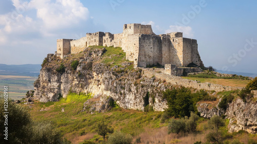 © Farid, Obraz premium An ancient castle stands majestically atop a hill, overlooking the landscape.