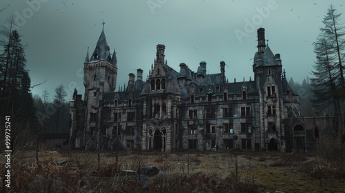 © Vii, Fototapeta premium An ancient castle surrounded by dense trees and foliage