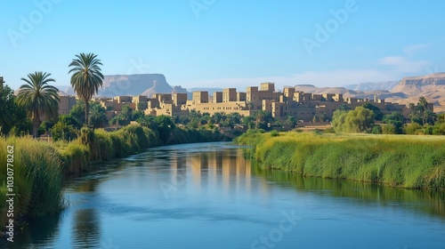 © vannet, Obraz premium An Ancient City with a River Flowing Through It