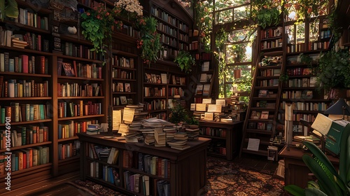 Obraz premium an ancient library with many books
