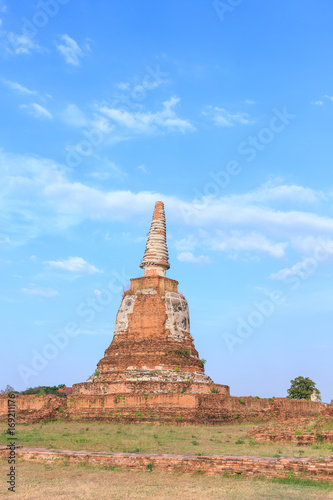 Fototapeta premium An ancient pagoda in meadow, Ayutthaya, Thailand