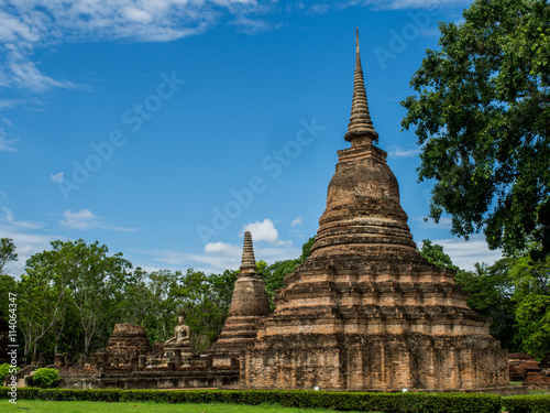 Fototapeta premium An ancietn pagoda at Mahathat Temple, an ancient temple in Sukhothai Historical Park, Sukhothai, Thailand.
