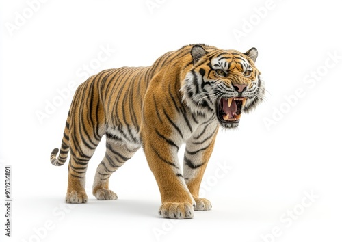 Fototapeta premium An angry wild roaring tiger isolated on a white background