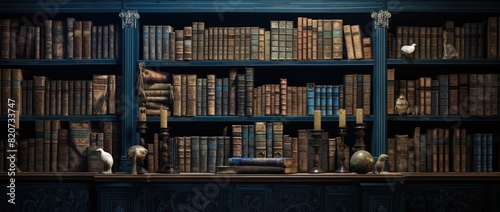 Fototapeta premium An antique bookshelf adorned with a collection of vintage books from...