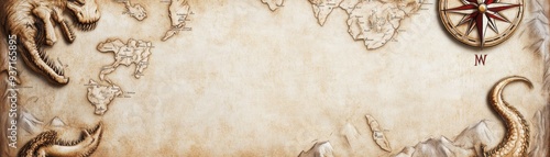 © Mnt, Obraz premium An antique map featuring intricate illustrations and a compass, perfect for adventure and exploration themes.